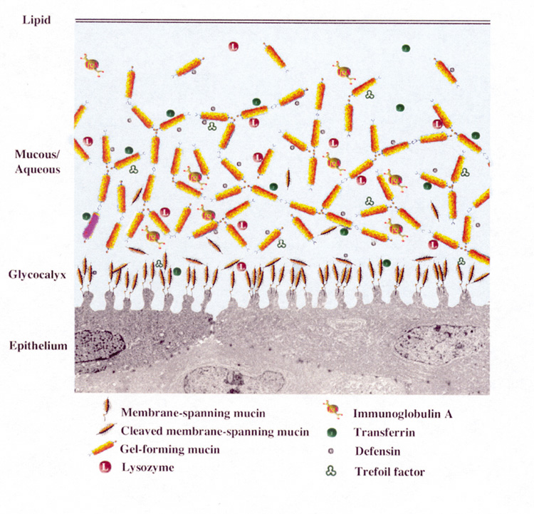 into the aqueous layer. This aqueous-mucin layer forms a hydrated