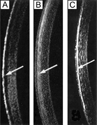 Although transscleral solute permeability has been shown to be affected by transscleral (intraocular) pressure, the effects of pressure on the transscleral permeability of solutes in the size range of commonly used drugs is relatively small.268 Because elevated intraocular pressure compresses the collagen fibers comprising the scleral stroma, narrowing the intracollagen diffusion pathways might be expected to affect the diffusion of larger molecules to a greater extent than smaller molecules.269 Thus, the effect of transscleral pressure on solute permeability may be considerably greater for solutes in the size range of macromolecules. These effects certainly must be considered as local genetic interventions for posterior segment disease are being investigated. More recent in vivo studies have demonstrated that effective drug levels can be reached and maintained in posterior ocular tissues using transscleral delivery.270–272 Clinical studies by Weijtens measured dexamethasone concentrations in the vitreous and serum of 54 patients scheduled for vitrectomy who received 7.5 mg dexamethasone orally before surgery.273–274 These drug levels were compared to vitreous and serum concentrations measured in 61 patients scheduled for vitrectomy who had received a single peribulbar injection of 5 mg of dexamethasone at various intervals prior to surgery. The results of these studies demonstrate that following a peribulbar injection of dexamethasone, only a small portion of the administered dose reaches the vitreous through the systemic circulation, whereas most dexamethasone reaches the vitreous by diffusing directly through the sclera. A more recent, randomized, masked, placebo-controlled clinical study has described the safety and efficacy of anecortave acetate, an angiostatic agent, depot suspension delivered by a posterior juxtascleral depot application for the treatment of subfoveal choroidal neovascularization.275 Compared to placebo, the drug was found to be safe and effective in maintaining vision, preventing severe vision loss, and inhibiting further subfoveal neovascularization compared to placebo. The sclera is permeable to a wide range of solutes, especially those in the molecular size range of drugs currently in use. Laboratory and clinical studies suggest that the relatively high permeability and the large surface area of the sclera could provide an excellent route for delivering drugs to the posterior segment of the eye. Based on recent studies, the transscleral route may be the drug delivery route of choice for posterior segment disease. |