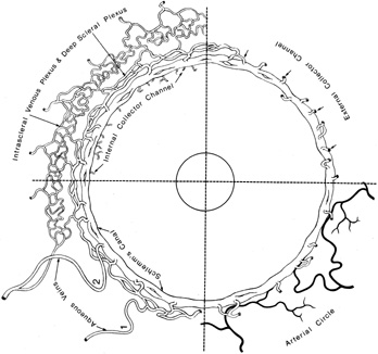 venous plexus, whence aqueous joins the general venous drainage.1 In addition, an alternate uveoscleral pathway exists (Fig. 1) that