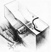 IOP in terms of episcleral venous pressure (Pe), aqueous flow (Fin), trabecular outflow facility (Ctrab), and uveoscleral outflow (Fu):IOP = Pe + ((Fin − Fu)/Ctrab)) thus IOP − Pe = ((Fin − Fu)/Ctrab)) and Fin − Fu = Ctrab (IOP − Pe) therefore Fin = Ctrab (IOP − Pe) + Fu In order to determine Ctrab and Fu, the eye in a living anesthetized animal may be cannulated with a needle and perfused with a solution of mock aqueous humor267 incorporating radiolabeled albumin (see later in this chapter).268,269 A value for IOP can be obtained by tonometry, or (in experimental animals) cannulation of the anterior chamber with connection via tubing to a pressure transducer. An estimate of Pe can be obtained in experimental animals by direct cannulation of an episcleral vein, or by measurement of the pressure necessary to completely collapse an episcleral vein.270 (In practice these procedures would be repeated several times and a mean value calculated, because Pe is not constant throughout the entire episcleral venous system). By substitution into the above equation, Fin may be determined. Fin can also be calculated by determination of the difference in radioactivity of a perfused radiolabeled solution before entering and after leaving the anterior chamber, the difference being related proportionally to total aqueous flow. These approaches, however, are applicable only to experimental animals; their invasive nature makes them unsuitable for use in the human eye. Another method for estimating the rate of aqueous flow involves the use of a perilimbal suction cup.85,271 The perilimbal suction, theoretically, occludes the outflow channels of the eye, and thus IOP rises. The rate of increase in IOP depends not only on the rate of formation of aqueous humor but also on the elasticity or distensibility of the eye. Unfortunately, there is a question as to whether this method may also alter the blood flow to the ciliary body, thus possibly having an effect on aqueous formation. Furthermore, as the pressure rises in the eye, the rate of inflow of aqueous humor declines, a phenomenon known as pseudofacility. In addition, the suction cup may not totally close off the drainage of aqueous. Nevertheless, Galin,271 using this method, calculated rates of aqueous formation that compare well with other methods. It is apparent that each of the foregoing methods has inherent errors and assumptions, yet despite this, the results indicate reasonable agreement among the various methods. The study of these methods has added much to the understanding of the factors that influence aqueous formation. In fact, it is not so much the absolute values themselves that are important but, rather the ability to compare changes in values for aqueous formation under different conditions that has been most informative. Of all of these methods, however, noninvasive fluorophotometry has become the method of choice for the determination of the rate of flow of aqueous. |