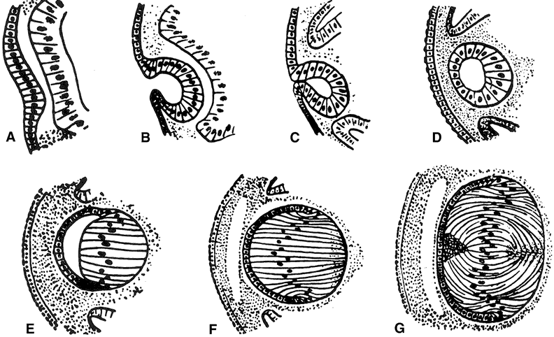 gestation) in human embryos (Fig. 4). At about 5-weeks gestation (5-mm stage) the lens plate begins to invaginate