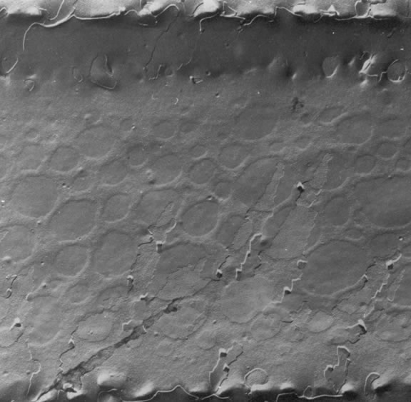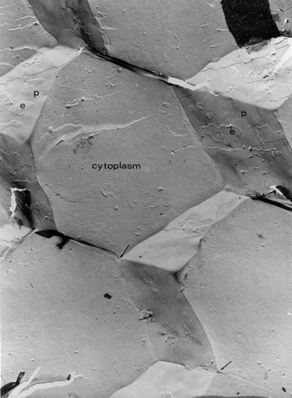 no ER. The nonparticulate cytoplasm of the mature fiber cells