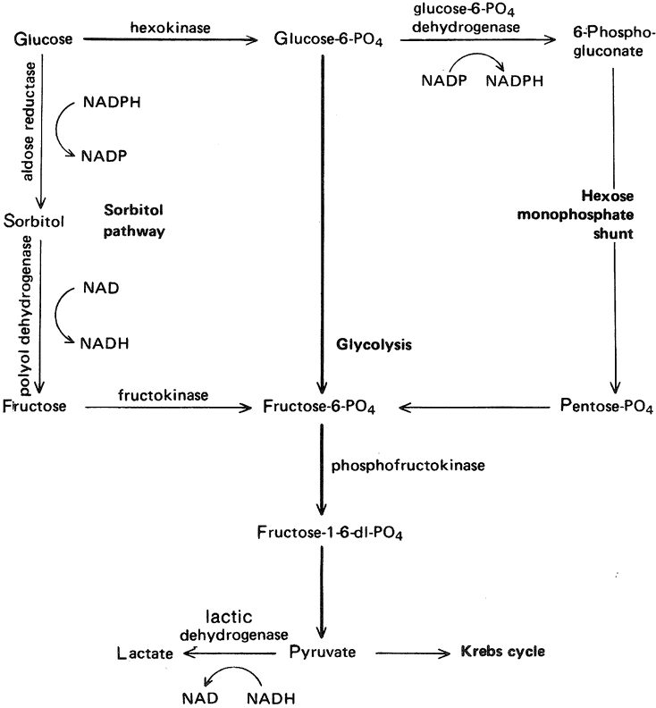 sorbitol pathway enzyme aldose reductase (see Fig. 16) plays a pivotal role in the process of cataract development. This enzyme