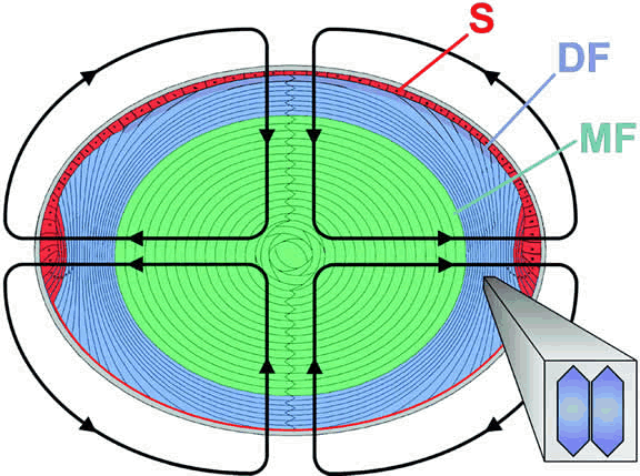 precisely with the underlying cells. The lamellar conformation of lens