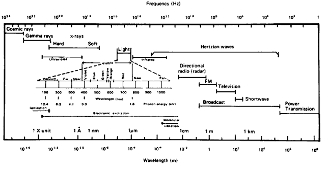 short cosmic rays, a few femtometers (10- 15 m) in wavelength, to power transmission, in which a single wavelength