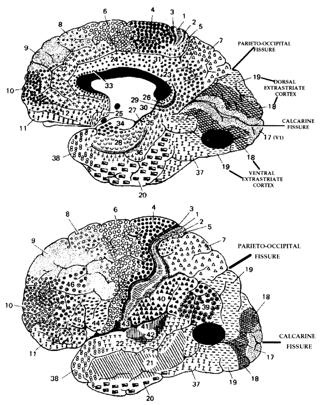 Brodmann16 used cytoarchitectonic criteria to divide the human cortex into several