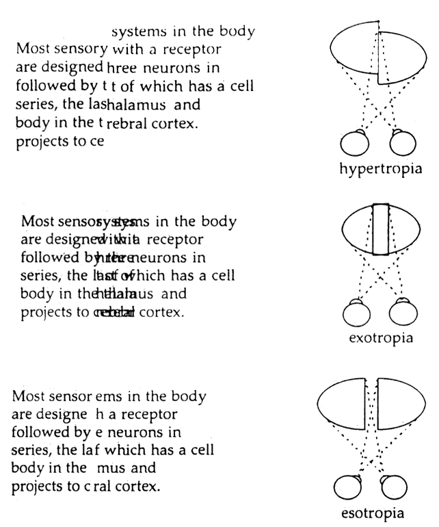 Kinsbourne and Warrington173 described a case of color agnosia, although Oxbury and associates170 considered it color dysphasia. In addition to impaired naming of colors for either visually presented or verbally named objects, their patient could not color line drawings of objects correctly or learn paired associations between seen objects and seen colors (visual-visual task). The defect went beyond anomia because the patient could not associate the appropriate color with objects, despite normal performance on color-matching and color-sorting tasks. The exact site of the lesion was unknown, but the patient also had object anomia and alexia without agraphia. The Alexias Acquired alexia is the loss of efficient comprehension of reading material despite adequate visual acuity. Reading is a complex process that involves form perception, spatial attention, scanning saccadic eye movements, and linguistic processing; thus it is not surprising that disturbed reading is a component of many types of cerebral or visual dysfunction. In most of these conditions, alexia is overshadowed by other clinical signs. In most patients, however, impaired reading can also be either the sole or the most dramatic complaint, and these patients may present to the ophthalmologist. The severity of alexia can range from a complete inability to read numbers and individual letters, to mildly slowed reading with occasional errors, confirmed only by comparing reading speed with normal controls matched for educational level.174 The latter type of subtle error is more frequently encountered in developmental dyslexia, a very different condition that Galaburda and co-workers175 and Livingstone and associates176 have attributed to a congenital paucity of neurons in the magnocellular layers of the lateral geniculate nucleus. Table 5 provides a classification of acquired alexic syndromes.
