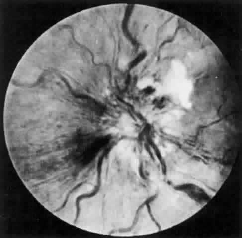 ANAPHYLACTIC HYPERSENSITIVITY REACTIONS Although uveitis due to drug sensitivity can be the result of medication applied externally to the eyes of sensitized patients, it is more frequently a result of inhalation or the injection of allergens.54 The iridocyclitis that has occurred rarely in patients with hay fever has been assumed to be causally related to the hay fever.55 CYTOTOXIC REACTIONS The destruction by malignant melanoma of the choroid by autologous serum-containing tumor-specific antibodies is an example of a cytotoxic reaction. This type of reaction may also play a role in sympathetic ophthalmia.56 IMMUNE-COMPLEX-MEDIATED REACTIONS The intravenous injection of large doses of horse serum into rabbits can result in circulating antigen-antibody complexes. These may be deposited in susceptible vascular beds where they activate complement and cause tissue damage. By means of this model, Wong and co-workers produced an immune-complex uveitis in association with lesions of the renal glomeruli.57 If there is damage to the uveal vessels (immunologic or nonimmunologic), the combination of newly introduced, intravenous antigen and preexisting antibody can be deposited in the uvea as immune complexes--a result of altered vascular permeability. The complexes bind complement and cause a uveitis (Auer reaction). This phenomenon could explain the recurrence of uveitis after a quiescent period.58 Lens-induced uveitis, Behçet's disease, and the occlusive vasculitis of the ganglion cell layer of the retina produced by lupus erythematosus may all be immune-complex-mediated reactions (Fig. 7). Both homologous and heterologous retinal extracts have been used to produce experimental endophthalmitis in animals, and immunization with these extracts (antigens) produces both antibody and T-cell responses.59 Eales disease may also be an immune-complex disease produced by antibody-dependent lymphocytes.60