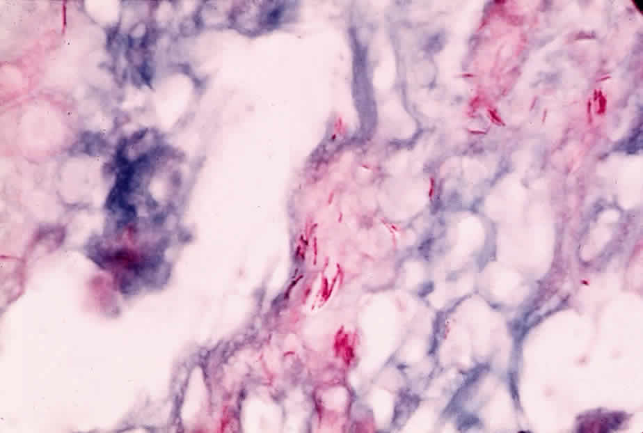 TUBERCULOSIS Mycobacterium tuberculosis is a facultative, intracellular, aerobic, acid-fast bacillus that is pathogenic only for humans. It produces mainly lung disease, but many extrapulmonary sites, including the eye, can also be affected. Cellular rather than humoral immune mechanisms are decisive in the host's recovery from tuberculosis, and in its diagnosis the tuberculin skin test (a manifestation of cellular immunity) is more useful than the measurement of serum antibody. Immunopathology M. tuberculosis can survive and proliferate within phagocytic cells. It may escape the bactericidal effect of the macrophages by preventing the fusion of enzyme-containing lysosomes with phagosomes that contain the organisms. Lipids and waxes of high molecular weight constitute up to 60% of the bacterium's cell wall and may be responsible for the responses of the host's tissues to the tubercle bacillus. They may also account for the impermeability of the organism to tissue stains. Tuberculoproteins are responsible for the induction of hypersensitivity and for the reaction of the skin to tuberculin. A substance known as “cord factor” causes the serpentine growth of the tubercle bacillus and may also inhibit leukocyte migration and stimulate granuloma formation. The host deals with M. tuberculosis principally by the mechanism of cellular immunity. Cell-mediated immunity to tuberculin can be passively transferred to uninfected experimental animals along with living lymphoid cells but not with immune serum. Immunity can also be transferred with the leukocyte extract transfer factor. Although patients with agammaglobulinemia produce no demonstrable antibodies, they can develop delayed hypersensitivity responses and normal resistance to the tubercle bacillus. Patients with defects in delayed hypersensitivity are more susceptible to the disease than persons normal in this respect. Tuberculosis may affect nearly all of the ocular tissues. A granulomatous uveitis is the lesion most frequently encountered and may be associated with mutton-fat keratic precipitates, Koeppe nodules, and vitreous opacities. Diffuse posterior uveitis may also occur, and although rare with modern treatment, the disease can affect the lids, sclera, cornea, and retina. With the recent increase in tuberculosis in AIDS patients, the ocular manifestations of tuberculosis are increasing.1–3 LEPROSY Leprosy is a chronic infectious disease caused by Mycobacterium leprae, an obligate, intracellular, acid-fast bacillus (Fig. 1). This organism can invade nerves and skin and give rise to widespread clinical manifestations. Ocular lesions occur in 90% of lepromatous leprosy cases, and nearly one third of these produce significant visual loss.