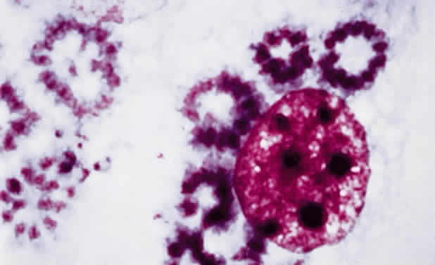 The fungus forms mycelia and endospores. The mycelia may disintegrate into aerosol particles, and when the particles are inhaled, clinical outbreaks of the mycosis occur. The arthrospores convert to spherules within alveolar macrophages, the spherules enlarge, their outer walls thin, and they release endospores. Immunopathology Cellular immunity is important in handling the primary infection. In healthy individuals, spherules are ingested by macrophages, and granulomas form. The granulomas slowly diminish in size and become fibrotic. In the absence of intact cellular immunity, progressive pulmonary disease occurs, with necrotizing pneumonia and widespread dissemination. Alternatively, a chronic coccidioidal granuloma, containing viable spherules, may form. Endospores are chemotactic for neutrophils, which attempt to ingest and destroy them. The neutrophils themselves are destroyed, however, and contribute to the massive pulmonary tissue necrosis. If the organism is successfully handled, the spherules are limited in the number of their growth cycles. Over several weeks, the host develops delayed hypersensitivity to coccidioidin (mycelial antigen) or to spherulin (spherule antigen). Positive skin reactions can be elicited in patients with either pulmonary disease or mild, active, disseminated disease. Extensive disease leads to anergy or to reaction only to very concentrated antigen. Positive tests become negative when the disease worsens, and negative tests become positive when it improves. Coccidioidin is prepared from autolyzed mycelia, but its exact composition is unknown. The 1:100 dilution is more specific than the 1:10 dilution because the latter often cross-reacts with other fungi, such as H. capsulatum. Spherulin is a recently introduced alternative to coccidioidin skin test antigen. It is as specific as 1:100 coccidioidin but considerably more sensitive. In concentrated solutions, it too cross-reacts with histoplasmin. Lymphocyte activation and migration inhibitory factor production have also been used to test host immunologic responses. Antibody does not play a protective role in this disease, but antibody assays can be helpful in the diagnosis of acute and chronic infections. Four serologic methods—the precipitin test, complement fixation, immunodiffusion, and latex agglutination—are in use. In the acute infection, the precipitin test is positive within 2 weeks of the onset of symptoms but reverts to negative within 6 months in more than 90% of infections. The latex agglutination test may become positive earlier than the precipitin test, but false-positive results occur in 10% of cases. When the precipitin antibody titer falls, the complement fixation titer rises and remains positive in chronic disease but is not quantitative and is used only for screening purposes. CRYPTOCOCCOSIS Cryptococcus neoformans is a yeastlike fungus that causes widespread infection in immunosuppressed individuals. The organism is most often transmitted to humans through avian droppings, particularly those of pigeons and starlings. Skin tests with cryptococcal antigen are often positive in pigeon breeders. Neurologic lesions, including papilledema and cranial nerve disease, are common. Immunopathology Both humoral and cellular immunity collaborate in defending the host against C. neoformans. The organism possesses a capsule with a polysaccharide component that impairs phagocytosis by neutrophils, but antibody and complement potentiate phagocytosis. (It has been suggested that the fungi escape to the central nervous system so as to avoid antibody- and complement-dependent opsonization, but this is strictly speculative). The role of cellular immunity in the host's defense is also important. Histologic examination shows a granulomatous inflammatory response and a virtual absence of neutrophils. Individuals with hypogammaglobulinemia are not unusually susceptible, but patients with Hodgkin's disease and HIV infection70 are more likely than others to become infected. The skin test response to cryptococcal antigen is the delayed type. Lymphocyte activation and migration inhibitory factor production can be demonstrated in cultures of lymphocytes from healthy donors, and activated macrophages are exceptionally able to destroy the organism. |