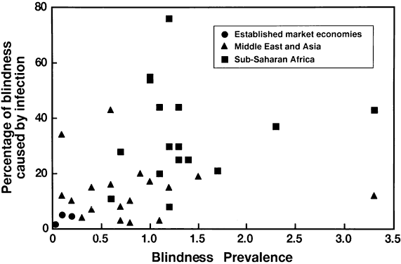 Infections account for much of the world's avoidable blindness.175 Most occur in less-developed areas. In an economically advantaged society, the