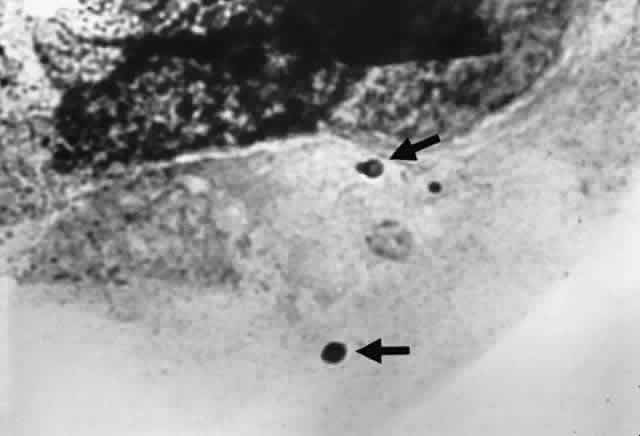 for specimens from the ocular adnexa. The KOH preparation has been replaced by the use of direct fluorescent staining such as the acridine orange and the calcofluor white stains. Specimens of the cornea, aqueous and vitreous fluids can be examined using either a drop of acridine orange stain or calcofluor white stain. The main drawback to the use of fluorochrome stains is that they require the use of a fluorescent microscope; however, because the stained organisms are viewed against a black background, they are easier to detect. The three most common stains are the acridine orange stain, the calcofluor white stain, and fluorescein-conjugated lectins. The acridine orange stain [AO], buffered at a pH of 3.8 to 4, stains RNA reddish orange and DNA light green. Bacteria stain reddish orange, filamentous fungi stain bright green, and yeast stain reddish orange cytoplasm with a green nucleus. The background is either black or a light green. Erythrocytes and pigment granules do not stain, which makes the AO stain useful for examining anterior chamber and vitreous fluids. Calcofluor white binds to both chitin and cellulose resulting in yeast, filamentous fungi, and cysts of Acanthamoeba staining bright green. Lectins are plant glycoproteins that bind to specific carbohydrates of fungi, mycobacteria, and Acanthamoeba species. Identification is achieved by using a standard panel and comparing the fluorescence pattern of the unknown. HISTOPATHOLOGICAL STAINS The hematoxylin and eosin (H & E) stain is useful for demonstrating the type of tissue reaction that is present, but it is not an acceptable stain for demonstrating yeast and fungi. They either stain poorly or are difficult to distinguish from the tissue. The exception to this is the excellent staining of the hyphae of Zygomycetes. The periodic acid-Schiff (PAS) stain is specific for fungal polysaccharides and can be used for both direct staining and for tissue sections. The fungal polysaccharides are oxidized to aldehyde groups at the 1,2-glycol positions by periodic acid. These aldehyde groups react with Schiff's leucofuchsin reagent to produce a deep reddish color. Gomori's methenamine silver (GMS) stain is specific for fungal cells which stain brown-black against a light green background. Chromic acid oxidizes the fungal polysaccharides to aldehyde groups which then reacts with the methenamine-silver nitrate to form a brown-black complex. The GMS stained slide can be counterstained with hematoxylin and eosin rather than the light green counterstain to allow visualization of the tissue reaction. The major drawback to using these stains as a primary means of establishing a fungal etiology in keratitis and endophthalmitis is that they require technical methods that may not be available at night and on the weekends. Slides can be prepared and held until they can be stained by the histology laboratory personnel. |