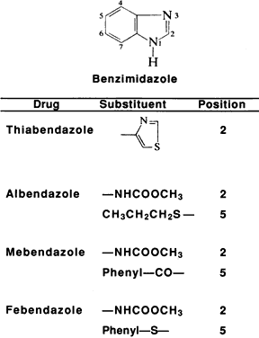 Chemistry and Preparations Thiabendazole (Mintezol) is available as 500-mg chewable tablets and as a 100-mg/ml suspension (Fig. 10).