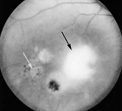 this difference is unclear. The true prevalence of ocular toxoplasmosis in various communities is not known for several reasons. Ocular disease may be asymptomatic or minimally symptomatic, and scars may exist in individuals who had remote episodes of toxoplasmic retinochoroiditis that went unrecognized. Ocular toxoplasmosis may occasionally be confused with other forms of retinitis and uveitis or even with neoplastic disorders, such as large-cell lymphoma. A large community survey in the state of Maryland identified retinochoroidal scars consistent with healed lesions of ocular toxoplasmosis in 0.6% of the population, and additional studies have found similar rates in other parts of the United States.9 In contrast, nearly 18% of the population in some areas of southern Brazil have such scars.10 If an expectant mother acquires systemic toxoplasmosis during the course of her pregnancy, she is at substantial risk (about 40%) for transmitting the disease to her unborn child.11 Based on numerous studies, the rate of congenital infections has been reported to be as low as 0.01% of live births in the United States to as high as 0.33% of live births in France.5 The child may appear to be healthy at birth but can develop signs of ocular or cerebral disease later. As many as 80% of individuals with congenital toxoplasmosis develop retinal lesions but these lesions may not develop for months or years after birth.12,13 Routine surveys of institutions for mentally defective children have uncovered the telltale signs of healed retinochoroiditis in the fundi of many of the institutionalized individuals, indicating that congenital toxoplasmosis—detected or not detected at birth—was the cause of mental retardation and eye lesions.14 Ocular lesions may be the only manifestation of congenital infection, however. For many years, the rate of ocular involvement in patients with acquired T gondii infection was believed to be in the range of 2% to 3%.15,16 More recently, it has been shown that the rate may be higher. In 1995, contaminated water from a municipal reservoir was implicated in an epidemic of acquired toxoplasmosis in Victoria, British Columbia.17 After the epidemic, 100 cases of acquired toxoplasmosis were identified. Of the 100 patients, 19 had active retinitis, consistent with T gondii infection. The frequency of recurrent attacks of inflammation is highly variable and cannot be foretold. Observed rates of recurrent disease are lower than the predicted prevalence of toxoplasmic lesions in a population.18 The median age at which recurrence develops has been reported to be early in the third decade, with 75% of reported cases occurring between 10 and 35 years of age.5,19 Ocular toxoplasmosis appears to be more common among immunosuppressed patients than in the general population. In patients with acquired immunodeficiency syndrome (AIDS), ocular involvement is less common than toxoplasmic encephalitis, however. |