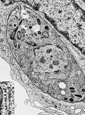 IgG and no IgM can be identified in the retina. CELL PENETRATION For retinal cells to be damaged by T gondii, they must first be penetrated by the parasite, as is true for any cells of the body. Once the host cell has been penetrated, multiplication of the parasite occurs in the cytoplasm until the cell actually bursts from overextension of its surface membrane.57 Parasites liberated by this process are free to swim off in search of a new host cell. Toxoplasma gondii has a primitive type of mouth referred to as a conoid. This organelle is extended as the parasite “searches” for a host-cell and makes contact with the plasmalemma of a potential host cell immediately before entry. The work of Nichols and associates58 shows that rhoptries, other specialized organelles that are thought to contain lytic enzymes, protrude anteriorly into the conoid and fuse with the limiting membrane of the conoid just before the entry of the parasite into a host cell. Discontinuities develop in this membrane, through which the contents of the rhoptries appear to be discharged. After discharge, the rhoptries resemble empty sacs (Fig. 4). At the site where the conoid indents the host cell, phospholipid vesicles are formed in the plasmalemma of the host cell and a small discontinuity can be seen to develop in this membrane.34 The parasite then squeezes through this opening until it is totally enveloped within the cytoplasm of the host cell. The site of perforation subsequently shows a healing over or restoration of the continuity of the plasmalemma. The conoid of the parasite then retracts to its normal resting position. The extension of the conoid and its subsequent retraction can be documented by electron microscopy. A polar ring, to which a group of subpellicular microtubules is attached (see Fig. 2), appears to be at the base of the conoid when the conoid is extended but rides anteriorly when the conoid retracts. The method by which T gondii propels itself forward remains undetermined. It is thought that the microtubules provide a rigid cytoskeleton for the parasite but other organelles called microfilaments are believed by Russell and Sinden59 to contribute to the gliding motion of all coccidian sporozoan parasites, including T gondii. These authors state that the parasite first makes contact with a substrate and that glycoprotein ligands then pass posteriorly along spirally arranged microfilaments by a process known as “capping.” This zipper-like action is said to initiate a spiral gliding motion. CELLULAR DESTRUCTION Once T gondii gains access to the cytoplasm of a host cell, it is surrounded immediately by a parasitophorous vacuole, which fails to fuse with lysosomes under ordinary conditions. Thus, the parasite evades a process that would ordinarily result in its destruction; under these circumstances, T gondii continues to live and multiply within the parasitophorous vacuole. Nichols and associates34 believe that the wall of the vacuole is a hybrid membrane; that is, it is made up of components contributed by both the parasite itself and the host cell. A portion of the host-cell membrane is incorporated into the vacuole when the parasite traverses the host-cell cytoplasm; in addition, specialized tubules (end products of rhoptry secretion) can be seen extending from the parasite to the vacuolar membrane.58 The secretion of this tubular material appears to be a function of living parasites only. When the parasite dies, these tubules no longer can be seen in the vacuole. It is also noteworthy that vacuoles that contain dead parasites fuse readily with lysosomal bodies. The fusion of lysosomes with other organelles appears to take place only when the membranes of those other organelles are biochemically similar to that of the lysosome. Thus, according to de Duve and Wattiaux,60 lysosomes ordinarily fuse with phagosomes, because the membranes of these two organelles are similar, but not with mitochondria, whose membranes are biochemically and structurally different from lysosomes. The parasitophorous vacuole of T gondii has a hybrid membrane rendering it biochemically different from lysosomes and other types of phagosomes, which is probably the main reason that naive macrophages (from individuals who have never been infected by T gondii) fail to destroy T gondii. Instead, T gondii parasites destroy the macrophage after multiplying and bursting the cells. Multiplication of the parasite is a primary factor in the pathogenesis of the retinal lesion. As Frenkel23 notes, the destructive activities of the parasite are more significant in retinal cells than in cells of the intestinal villi or liver because the latter cells tend to be replaced quickly, whereas retinal cells are never replaced. INFLAMMATION Within several hours after infection has occurred in the retina, macrophages can be identified in the tissue. In individuals with no previous immunity to T gondii, these macrophages are somewhat ineffective in controlling the infection. Natural killer (NK) cells and other lymphocytes are soon attracted to the lesion site, as are monocytes, polymorphonuclear leukocytes, and eosinophils. If necrosis is severe, polymorphonuclear leukocytes may predominate in the early lesion. Inflammation appears to be a response to proliferation of trophozoites. Corticosteroid therapy without concomitant antimicrobial therapy can actually result in increased inflammation, presumably because the suppression of host defenses allows increased proliferation of the parasite.5,41 Conversely, antimicrobial therapy alone results in rapid resolution of inflammatory signs in immunosuppressed patients who have ocular toxoplasmosis.5,61 Inflammatory reactions are occasionally seen in patients without active retinochoroidal lesions. They include neuroretinitis, retinal vasculitis in patients with acquired systemic toxoplasmosis, and recurrent iridocyclitis or persistent vitreous inflammatory reactions in patients with inactive toxoplasm