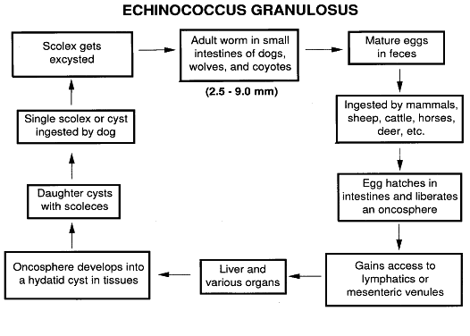 There are three main types of hosts for parasites. A definitive host, in general, is a host in which parasites reach their sexual maturity. An intermediate host serves as a source of shelter for the asexual phase of the life cycle of the parasite, or is an arthropod that may play a role in the transmission of the disease to man. An incidental host is a host in which the parasite does not ordinarily live. The host may or may not show harmful effects from this relationship.1 |