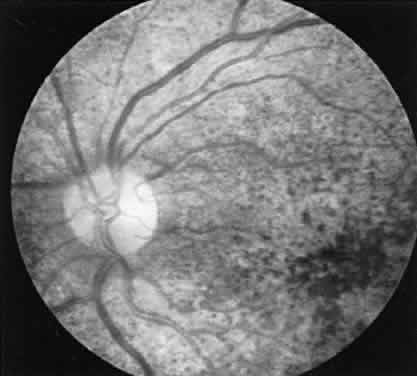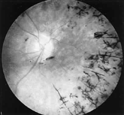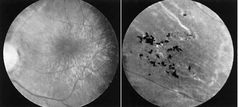 This patient had birdshot choroiditis, an inflammatory disorder of the choroid with severe secondary photoreceptor degeneration. The ERG gives evidence of widespread degeneration, but the history and clinical findings preclude the diagnosis of a generalized heredoretinal degeneration. This disorder of birdshot choroiditis may produce a “pseudo-retinitis pigmentosa” picture8 (Table 2).