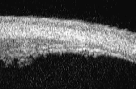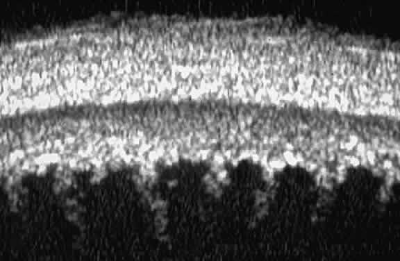 as a highly reflective, very bright line. The stroma is the thickest