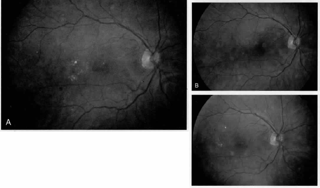 Although the ETDRS showed a treatment benefit at all levels of visual acuity, if an eye has good vision and is asymptomatic, one can elect to follow the patient, rather than treat immediately. That patient should be followed at close intervals at least every 3 months; a fluorescein angiogram is not indicated until the decision to treat has been made based on the clinical examination (Color Plate. 3, Fig. 3).