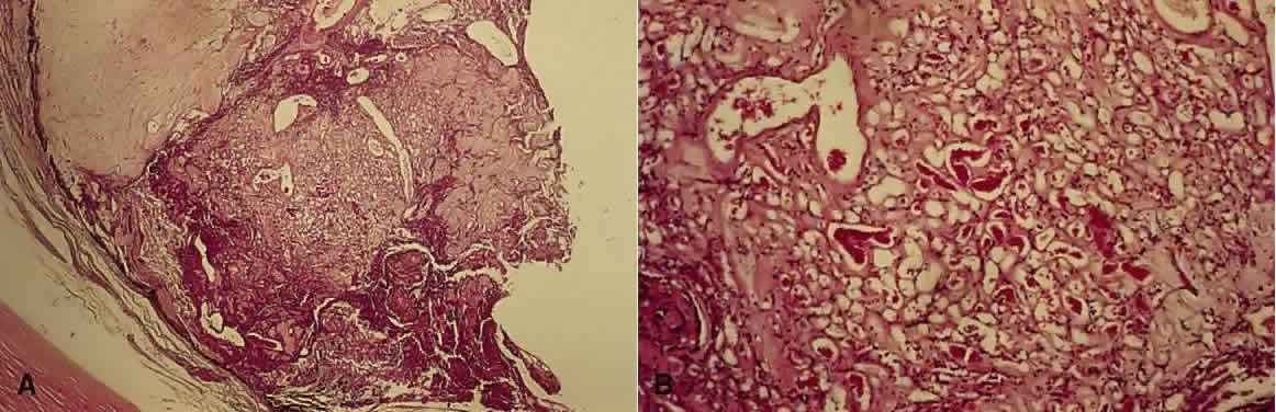the anomalous conjunctival vessels of the Louis-Bar syndrome. If a tumor