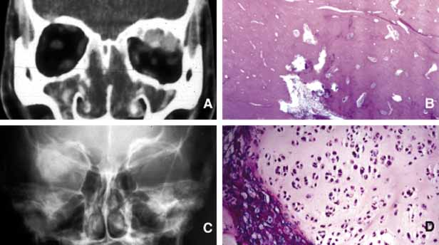 ANOPHTHALMOS/MICROPHTHALMOS When the globe is abnormally developed, microphthalmos, congenital cystic eye, and extremely rarely, anophthalmos occur. Microphthalmos usually occurs as a unilateral condition and in approximately 10% of cases it is associated with other craniofacial malformations including agenesis of the corpus callosum, polymicrogyria, and mid-line arachnoidal cysts. Microphthalmos may be seen as a part of several genetically determined neuronal migration disorders such as Walker-Warburg syndrome, Aicardi syndrome, and Fukuyama congential muscular dystrophy.9,10 In cases of microphthalmos and anophthalmos the orbit may be well formed but does not develop to a full adult volume. The mechanism by which the presence of the globe effects the growth of the orbit is not well understood. Microphthalmos may be associated with a colobomatous cyst as a result of the abnormal closure of the embryonic optic fissure leading to the prolapse of neuroectodermal tissues into the orbit (Fig. 1) This cystic structure may increase rapidly in size to overshadow the abnormal globe and may be confused with a neoplasm. When cystic lesions in the orbit are suspected imaging studies should be performed not only to look for other intracranial abnormalities but also to establish the possible connection of the cyst to the colobomatous globe versus to abnormally formed meninges.11 Macrophthalmos (buphthalmos) may also rarely develop as a congenital anomaly in patients with Sturge-Weber syndrome and rarely in neurofibromatosis type I. ORBITO-CRANIAL MALDEVELOPMENTS Cephalocele results from the extension of maldeveloped CNS tissues including meninges (meningocele), brain parenchyma (encephalocele), and the combination of the two (meningoencephalocele) into the orbital cavity.12,13 Intraorbital cephaloceles may develop anteriorly at the suture lines of orbital bones or posteriorly extending into the orbit from orbital fissures and the optic canal. Depending on the combination of these herniations they contain brain and/or meningeal tissues (Fig. 1). Aberrant fibroglial tissue has also been described in the orbit.14 Hamartoma is a tumor-like proliferation of tissues that normally exist at a given body location. The best examples of orbital hamartomas are the vascular hamartomatous lesions that are composed of vascular elements including capillary endothelial cells, distended or collapsed cavernous blood and lymph vessels, tortuous arterial and venous channels with or without anastomoses, etc. Other examples of hamartomatous orbital tumors include neurofibroma and lipomatous hamartoma.15 Choristoma, however, is a tumor-like proliferation of tissues that are not normally present at a given body location. The most commonly encountered example of orbital choristoma is a dermoid.16 Dermoids that present with many varieties result from the entrapment of epithelial structures at the site of closure of fetal fissures. Superficial dermoid cysts occur primarily subcutaneously anterior to orbital septum or within the anterior orbit. If the cyst wall is made of epidermis without dermal tissues, it is classified as an epidermoid cyst. These lesions are occasionally lined by conjunctival or pseudostratified respiratory epithelium.17 The superficial lesions must be distinguished from deep orbital dermoids that are usually rounded, encapsulated tumors filled with fatty materials, keratin, and dermal structures such as hair particles. Histopathologically the dermoid wall is lined by keratizing squamous epithelium with dermal appendices including hair follicles and sebaceous and eccrine glands.18 Most of the dermoids are well outlined by ultrasonography because of their anterior location thus making CT or MRI rarely necessary.19 If the dermoid is unusually large or located at the frontal zygomatic suture, CT is necessary to document the relationship of the lesion to the bone before surgical intervention. Rarely, dermoids at the fronto-zygomatic suture may develop dumbbell-shaped lesions partially within the orbit and partially extending into the temporal fossa.20,21 Unusually large superior orbital dermoids particularly those that leak and create granulomatous reaction within adjacent soft tissues may erode the bone and extend into the frontal sinus or the cranium (Fig. 2). ORBITAL TERATOMA Teratoma is a germ-cell tumor that contains tissues derived from endoderm, ectoderm, and mesoderm22 (Fig. 1). Therefore, these lesions may contain skin, bowel, lung, brain, thyroid, cartilage, and bone tissues. Most teratomas develop unilaterally and in girls. A majority of these congenital tumors are benign. Occasional reports have documented malignant transformation within orbitocranial teratomas.23 However, these benign tumors continue to grow after birth because of the collection of secretions from different tissues into the partially cystic spaces of the tumor. Some teratomas create massive proptosis and most can only be treated by exenteration. However, some of these lesions have recently been reported to be removed surgically with preservation of the globe and other vital orbital structures. TRAUMA Mechanical Injury Orbital injuries result from the absorption of kinetic energy that occurs whenever the orbital tissues contact an object moving at a different speed.25 The orbital rim is capable of absorbing a considerable amount of kinetic energy without being fractured. Yet, a variety of impact forces striking the orbit may result in fractures in different areas.26 The absorption of the kinetic energy by an orbital bone may lead to contusion and/or laceration of the skin and superficial soft tissues, local deformation of the adjacent structures, globe, orbital soft tissues and bones and increases pressure in the orbital cavity. A common end result of an orbital impact is the fracture of the floor and/or the medial wall (lamina papyracea)27 (Fig. 3). Fractures of other orbital bones occur less often. Foreign bodies may be introduced 
