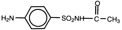 Combinations of polymyxin B with neomycin and gramicidin or trimethoprim are available as solutions, and combinations with bacitracin, neomycin, and bacitracin, or oxytetracycline are available as ointments only. The ointments contain 10,000 U per gram of polymyxin B. Two antibiotics commonly combined with poly-myxin are gramicidin and trimethoprim. Gramicidin alters bacterial cell wall permeability. Like bacitracin, it is only used topically because of systemic toxicity. Trimethoprim is a competitive inhibitor of bacterial dihydrofolate reductase, an enzyme that is necessary for purine synthesis.149 The other compounds that polymyxin B are combined with are addressed elsewhere in this chapter. Clinical Experience and Ophthalmic Uses All polymyxin combination products have shown efficacy against bacterial conjunctivitis,150,151 but no clinical studies of their use in the treatment of bacterial keratitis have been conducted. Clinical studies have shown that polymyxin B-trimethoprim andpolymyxin B-neomycin-gramicidin are as effectiveas each other152–153 and gentamicin sulfate,154 sodium sulfacetamide,154 and chloramphenicol138,150 in the treatment of bacterial conjunctivitis. Adverse Effects Those combination antibiotic products that do not contain the highly allergenic agent neomycin are commonly recommended in the literature.4,149,150 Polymyxin B rarely causes a hypersensitivity reaction. Chronic use of polymyxin B may result in toxic conjunctivitis. SULFACETAMIDE Chemistry, Ophthalmic Preparation, and Pharmacologic Action Sulfacetamide (Fig. 9) 10% ointment (AK-Sulf, Cetamide, Sulamyd Sodium) and sulfacetamide 10% to 30% solutions (10% AK Sulf [Akorn, Inc, Buffalo Grove, IL], Bleph-10 [Allergan, Inc, Irvine, CA], Ophthacet, Ocusulf, Sulf-10 [CIBA Vision, Duluth, GA], Sulamyd Sodium, and Isopto Cetamide) act by preventing the incorporation of para-aminobenzoic acid into folic acid, thus inhibiting bacterial purine biosynthesis. Sulphonamides are bacteriostatic.