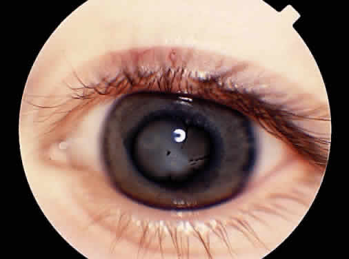 can be premature cataracts, white with pressure, lattice degeneration, meridional