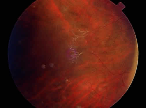 the retina and into the vitreous base. Subretinal and peripheral retinal