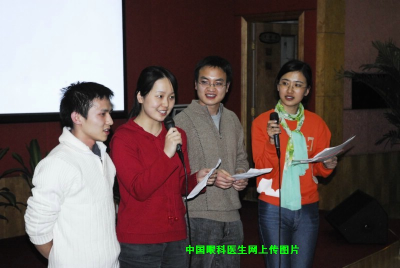 2008年1月全体眼科同仁来到昌平蟒山国际会议中心参加了一年一度的科室年度总结及联欢会。董方田主任首先在会议上总结了2007年眼科工作取得的成绩,存在的问题和面临的调整。展望了2008年工作的安排和科室的发展规划。眼科老专家张承芬教授在会议上做了激情洋溢的讲话,鼓励眼科同仁不仅要继承协和的优良传统,更要把协和眼科发扬光大。之后各位副主任做了工作述职报告,各专业组组长发言提出本专业组在新的一年工作安排和打算。后会眼科同仁一起参加了丰盛的晚宴和之后的联欢活动。